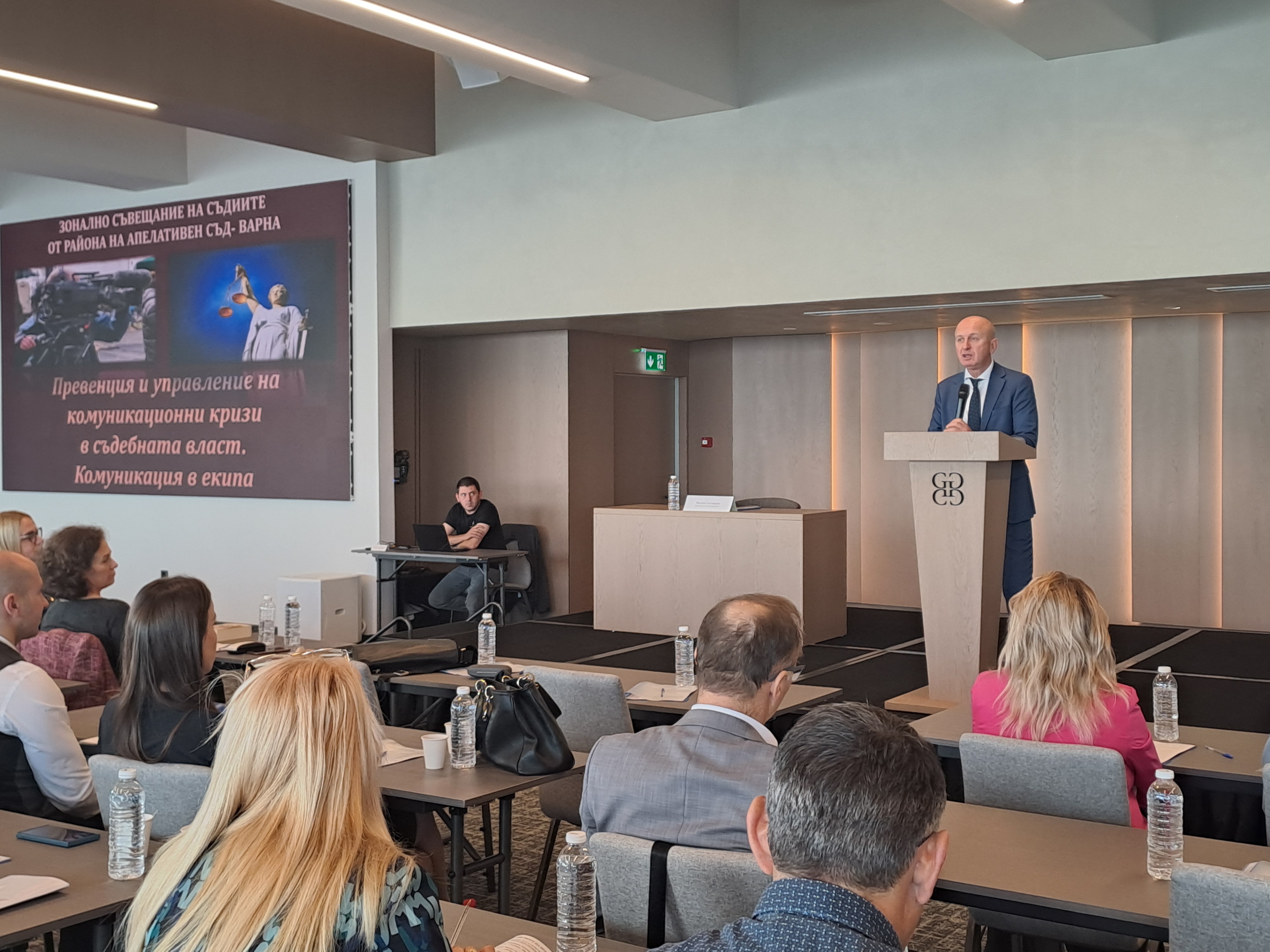 Двудневно зонално съвещание, организирано от Апелативен съд – Варна и Националния институт на правосъдието, събра над 130 съдии, ПР-специалисти и съдебни служители. Те се обучаваха по теми, свързани с отношенията в екипа, предотвратяването и управлението на комуникационни кризи. Участниците бяха представители на районните и окръжните съдилища в Североизточна България, на Апелативния и Административния съд във Варна. Включиха се и ръководствата на апелативните съдилища в София, Пловдив и Бургас.